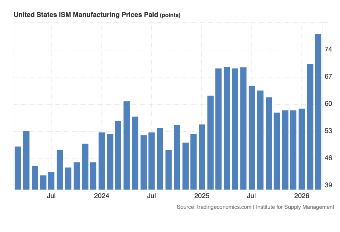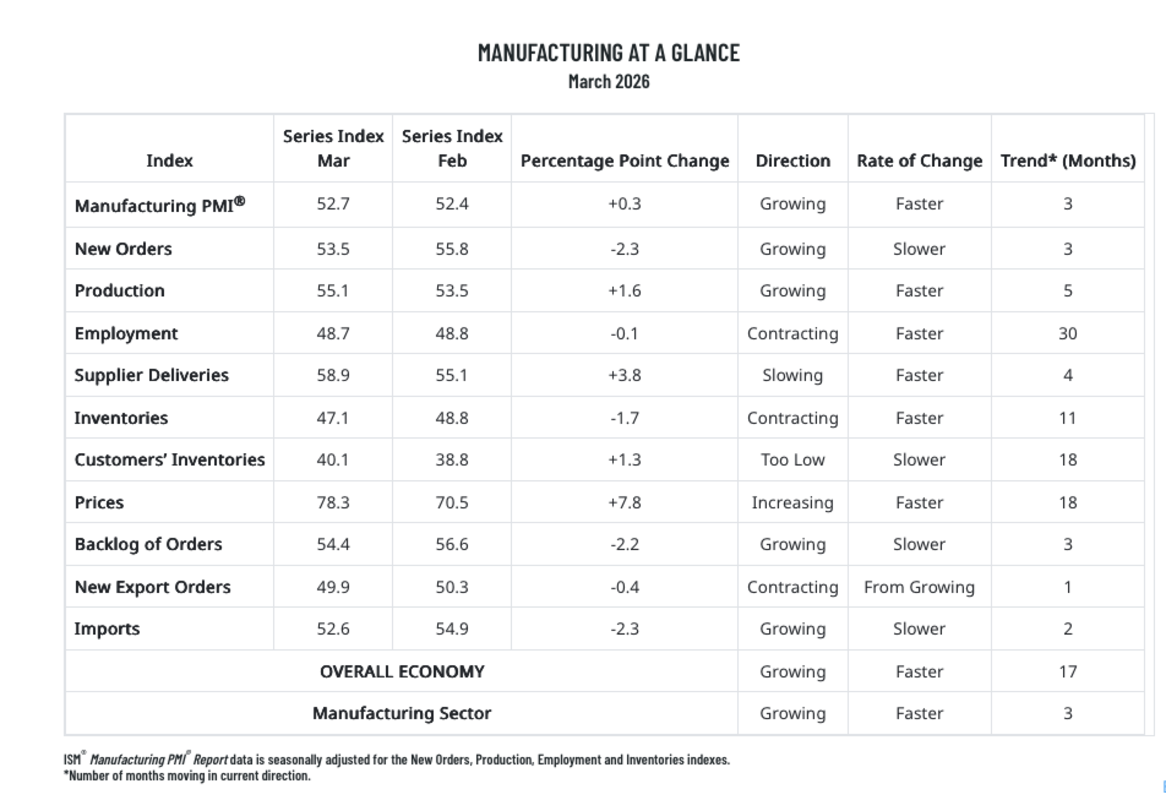 Most of the March manufacturing PMI data released by ISM is similar to that from S&P Global, but it is hard to miss the slight jump in the Price index to 78.3.